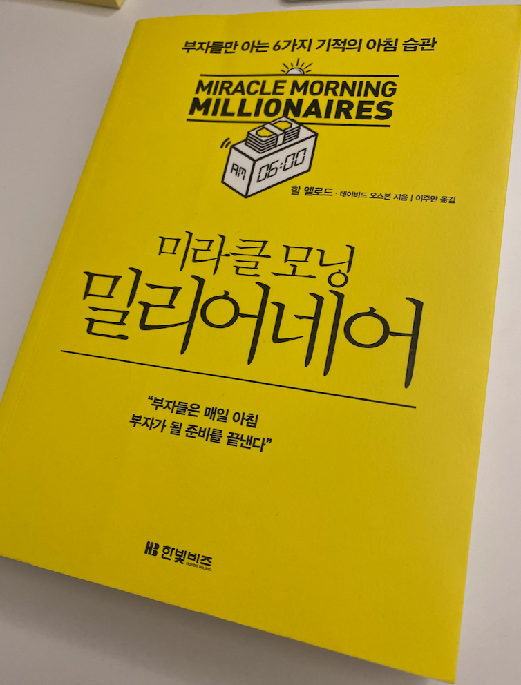 이 책을 읽고 딱 3일째 미라클 모닝을 하고 있다. 평소보다 1시간 정도 일찍 일어나고 있는데, 정말 쉽지 않다. 책을 읽기 전에도 아침에 일찍 일어나는 습관을 가지려고 했지만 번번이 실패했다. 동기가 조금 부족했던 것 같다. 하지만 이 문구를 읽으니 약간의 동기부여가 되는 것 같다. 내 인생을 발전시키는데 아침 만한 시간이 없다는데 그 시간을 날려버려니 나에대한 투자 기회를 매일 날려버리는 것 같았다. 나를 위해 아침 시간을 투자하자.