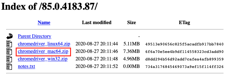 저의 경우는 크롬 85.0 버전과 mac os를 사용하기 때문에 아래와 같이 클릭하여 다운 받았습니다.