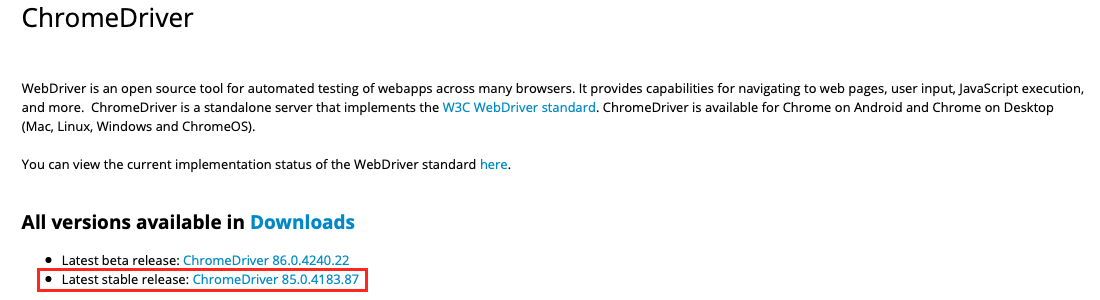 selenium을 사용하기 위해선 브라우저가 필요합니다. safari, chrome 등 다양한 브라우저를 지원하지만 가장 안정적인 크롬을 사용하겠습니다. 크롬을 사용하기 위해 크롬 드라이버를 먼저 다운받겠습니다.
