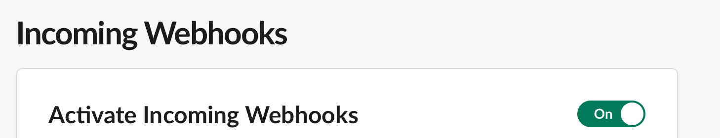 Incoming Webhooks에 들어가서 Activate Incoming Webhooks를 On 상태로 체크해준다.