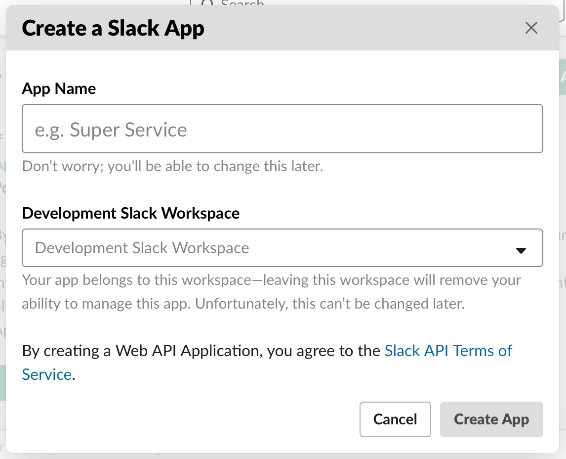 방법을 요약하면 다음과 같다. 아래 링크에 들어가서 사용할 App 이름을 정하고, workspace를 선택한다.