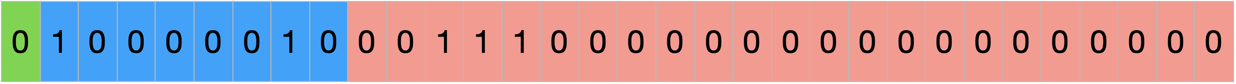 - 부호비트 1, 지수비트 8, 가수비트 23