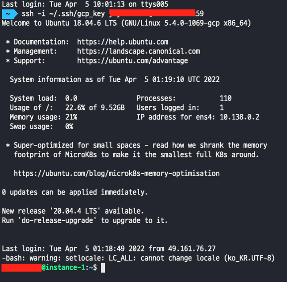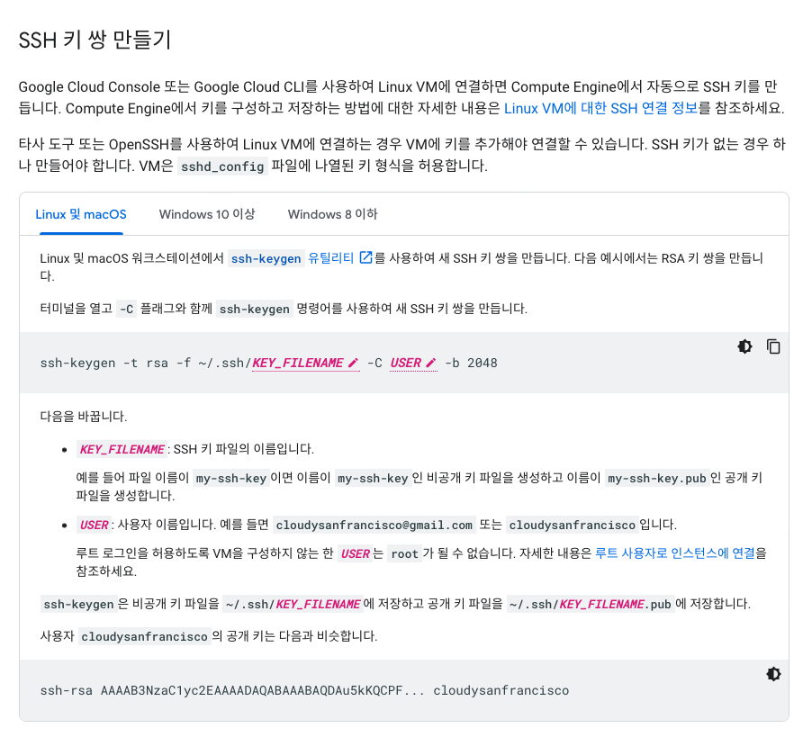 지난 게시물에서 프리티어로 인스턴스를 만들어봤습니다. 브라우저로 접속은 해봤지만 매번 gcp사이트를 접속하기가 번거롭기 때문에 터미널에서 ssh로 접속하는 방법을 알아보겠습니다.