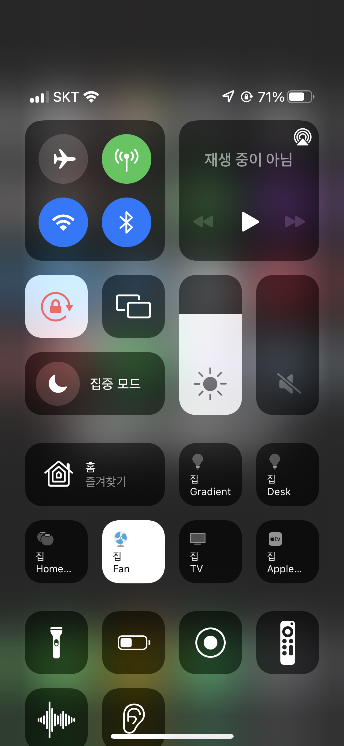 홈킷에 등록하면 Siri를 통해서 음성 명령이 되고 제어센터에서 버튼으로 쉽게 제어할 수 있어서 굉장히 편리하다.