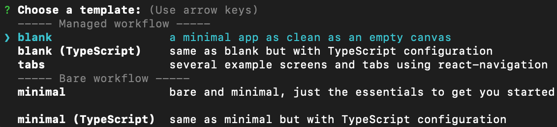 설치가 완료되면 이제 react native 프로젝트를 시작할 경로에서 아래와 같은 명령어를 실행해줍니다.